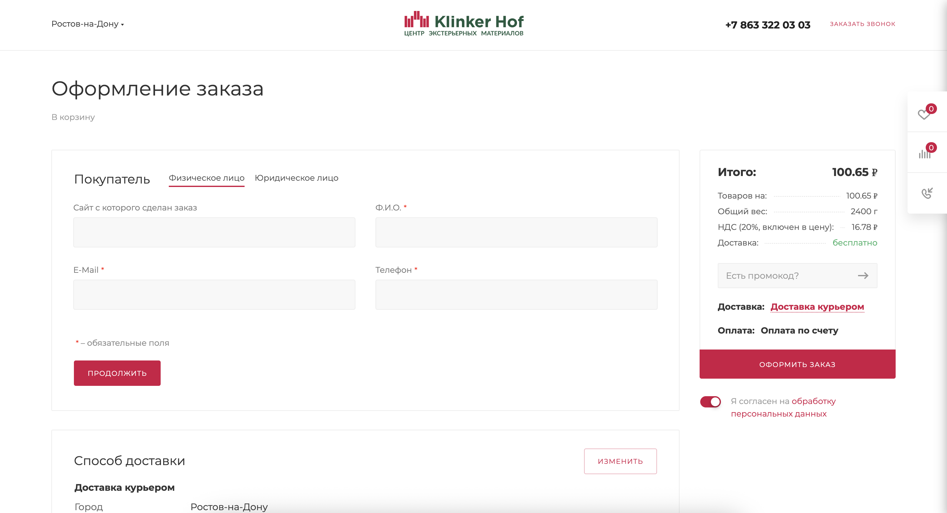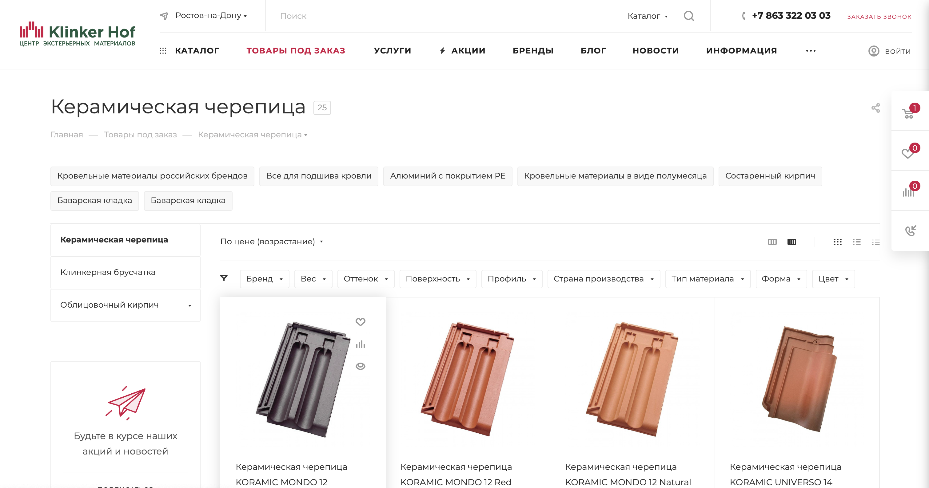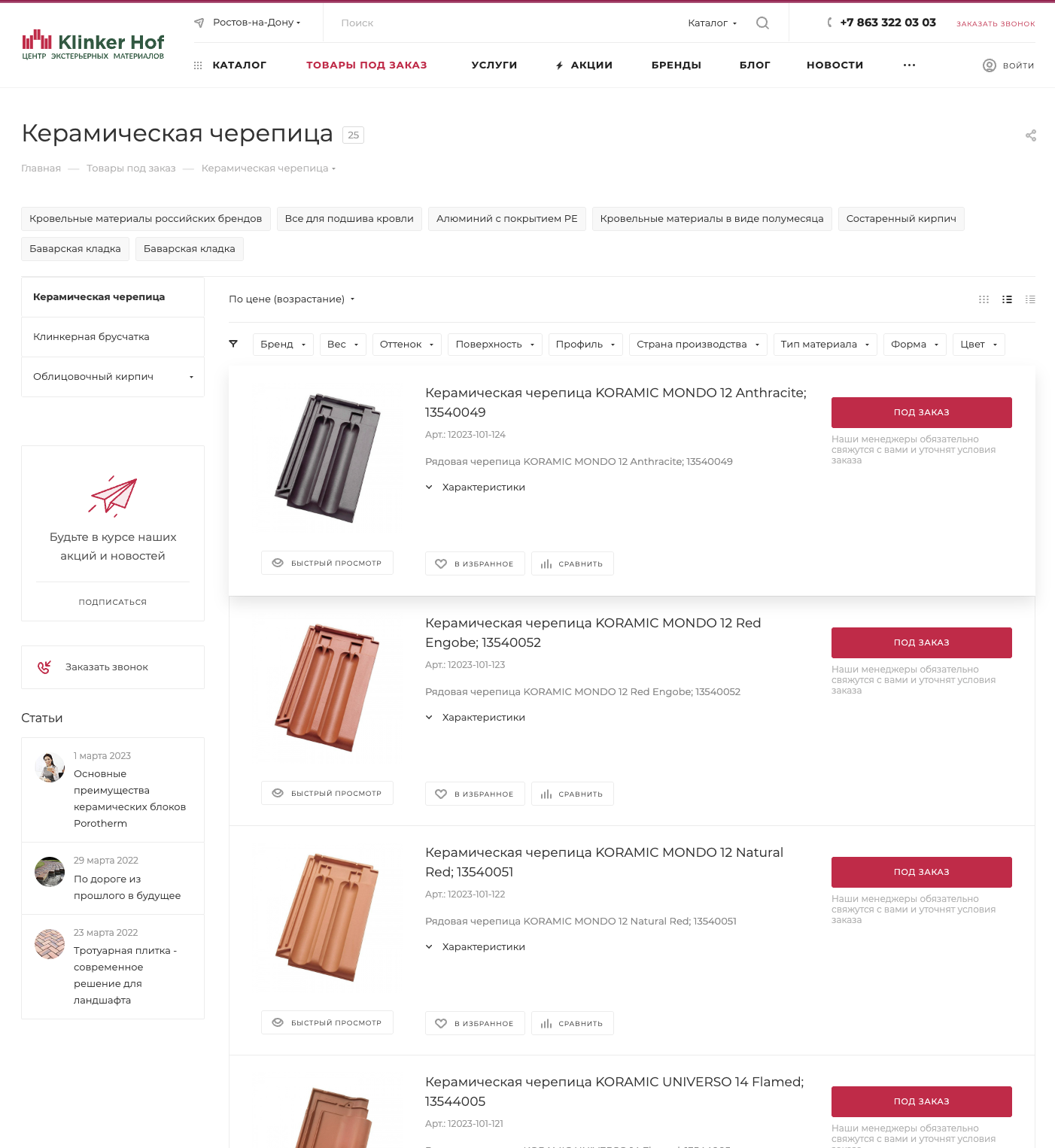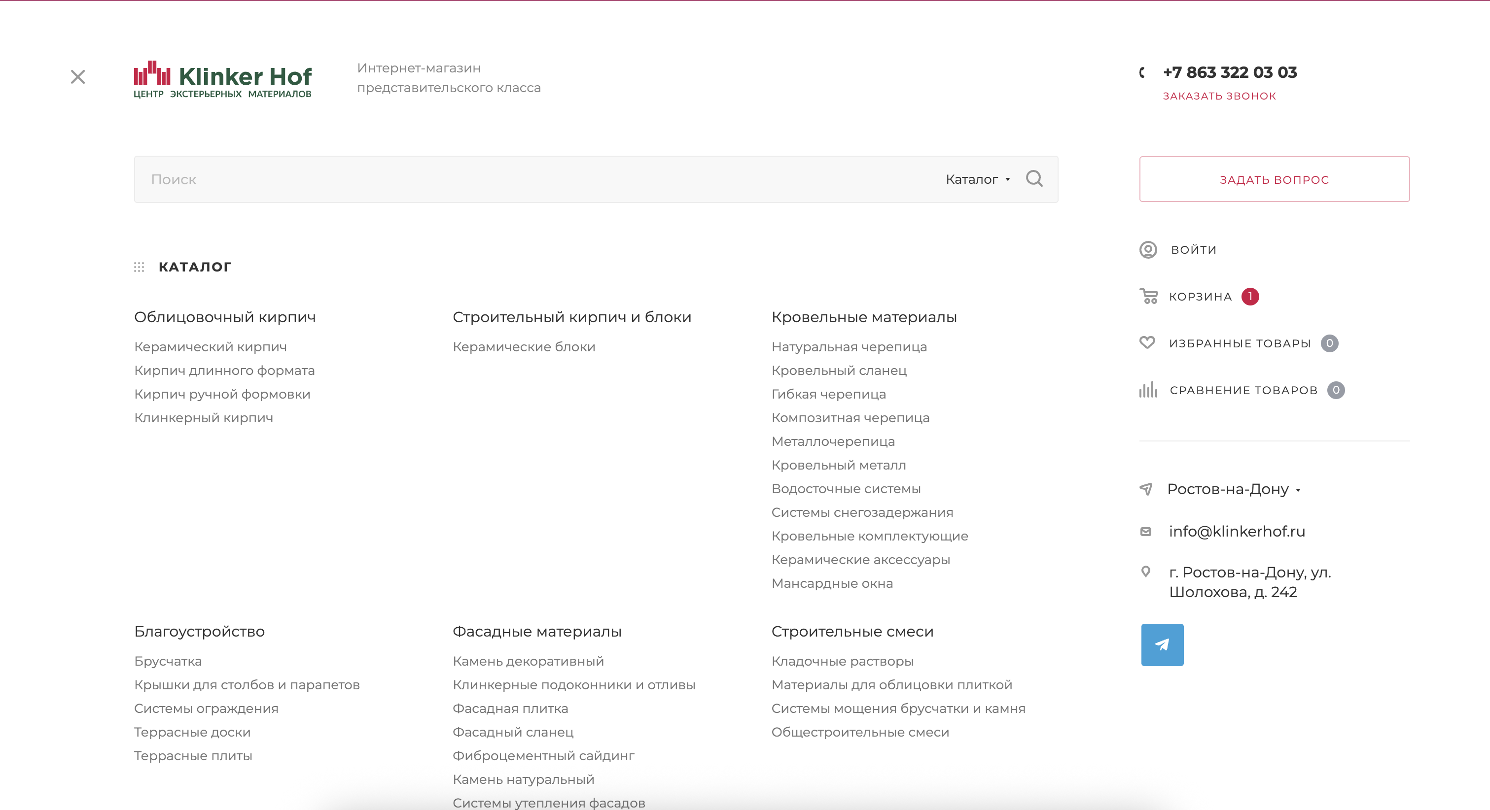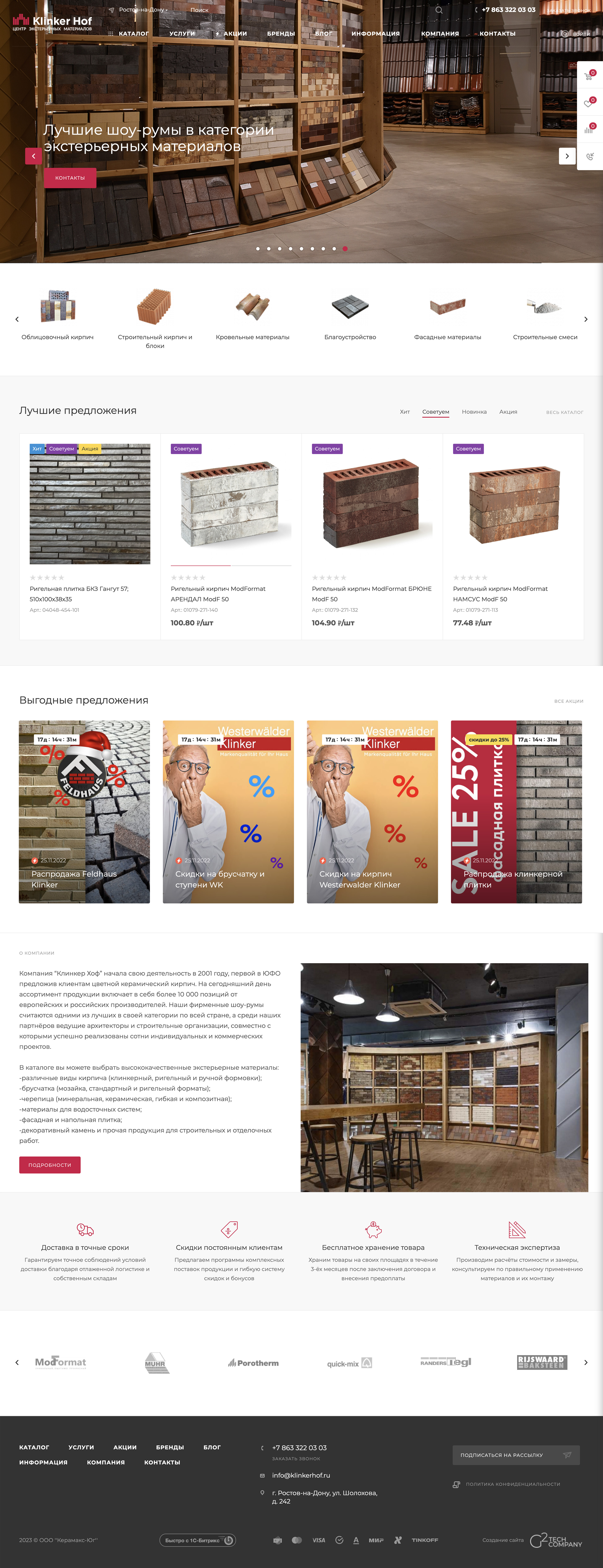 Компания «Клинкер Хоф» — поставщик высококачественных материалов для строительства и облицовки: клинкерный кирпич, фасадная плитка, кровля и элементы благоустройства. Задача проекта — улучшить пользовательский опыт на сайте и автоматизировать работу интернет-магазина, сохранив масштабируемость и удобство управления.