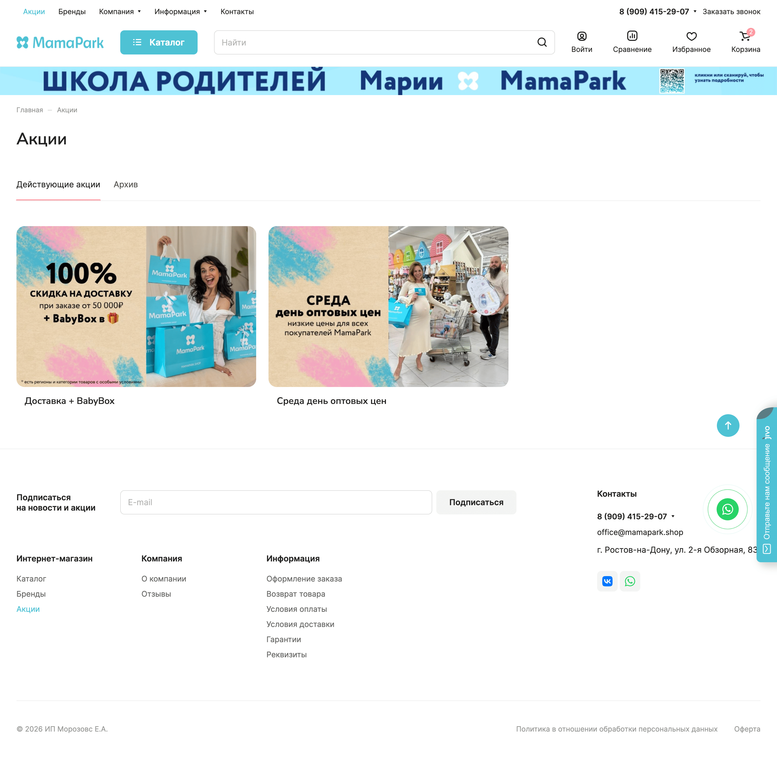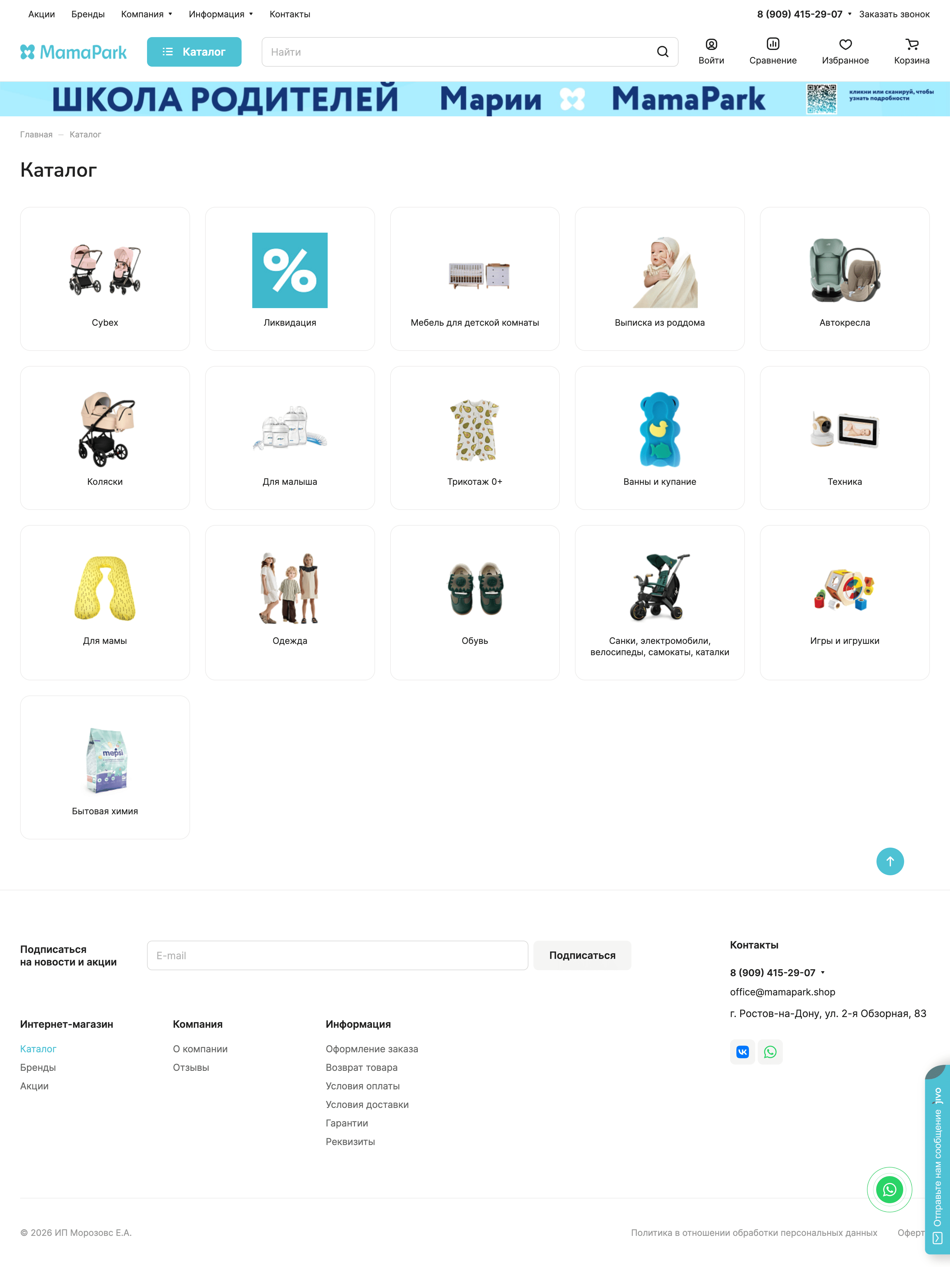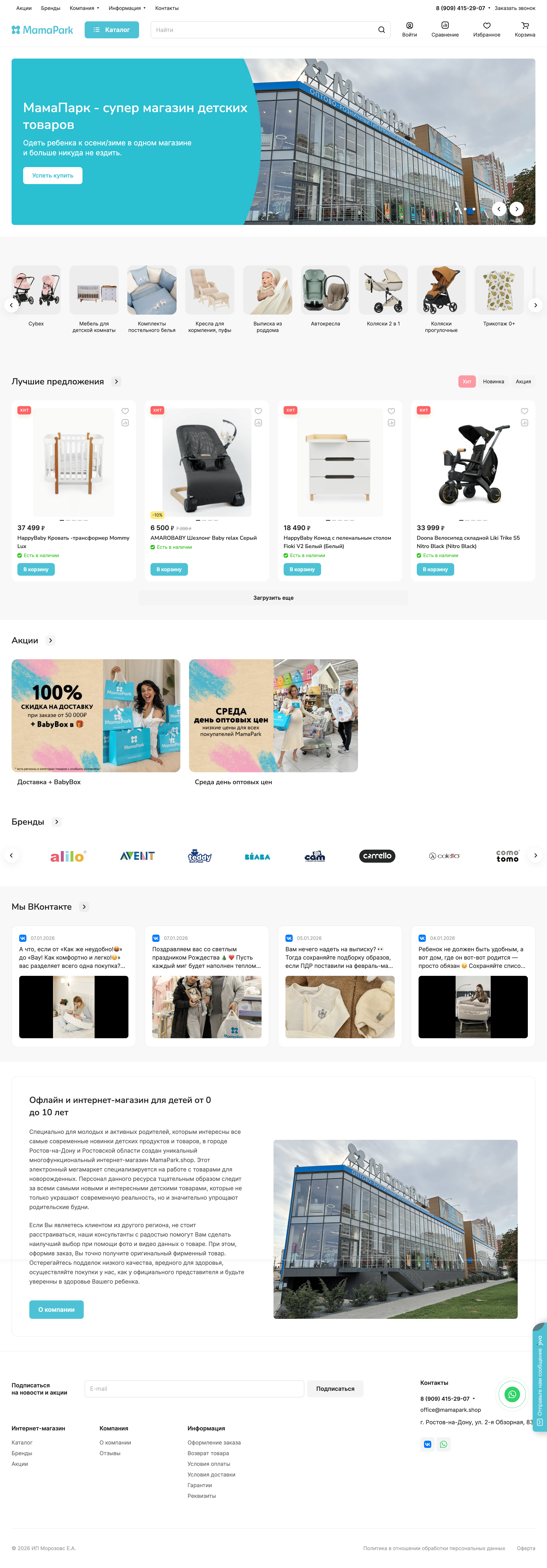 «MamaPark» — один из крупнейших детских гипермаркетов на территории Ростова-на-Дону, объединяющий офлайн-магазин и полноценную онлайн-площадку. Компания работает с семьями и родителями на всех этапах — от товаров для новорождённых до ассортимента для детей постарше, предлагая широкий и постоянно обновляемый выбор.