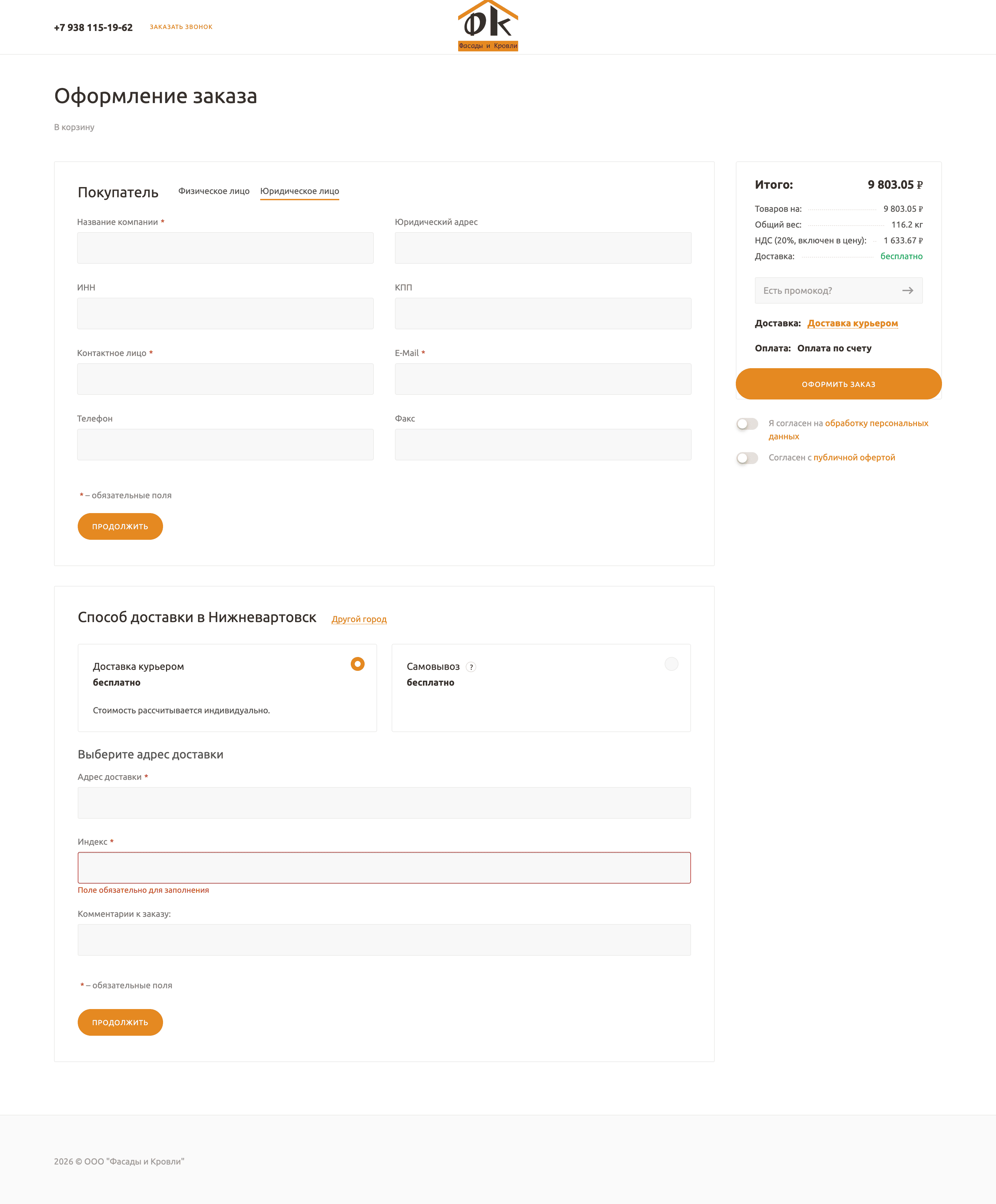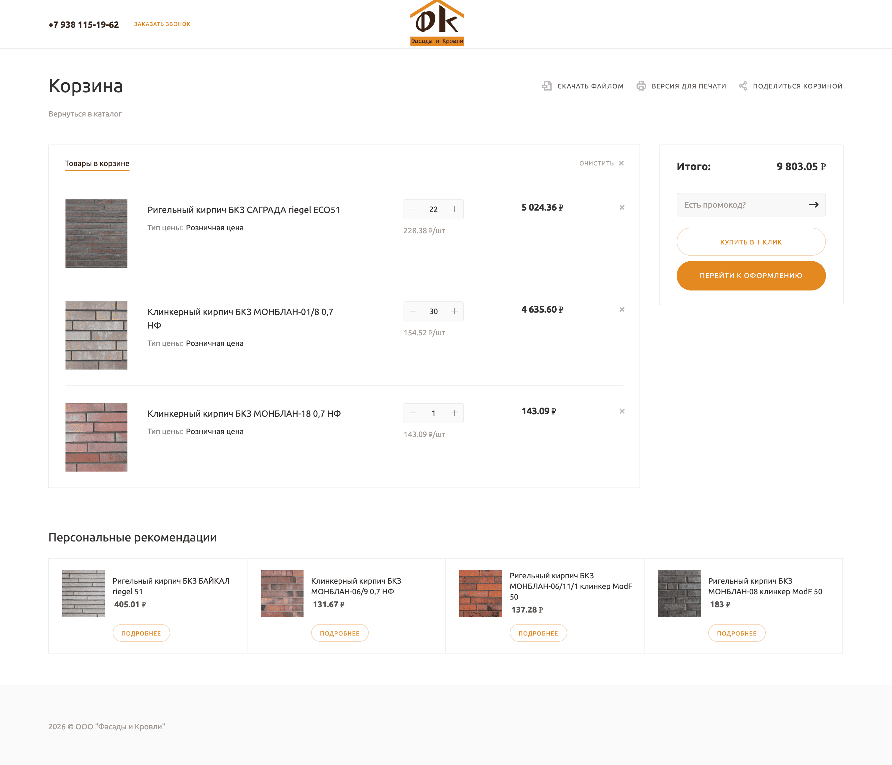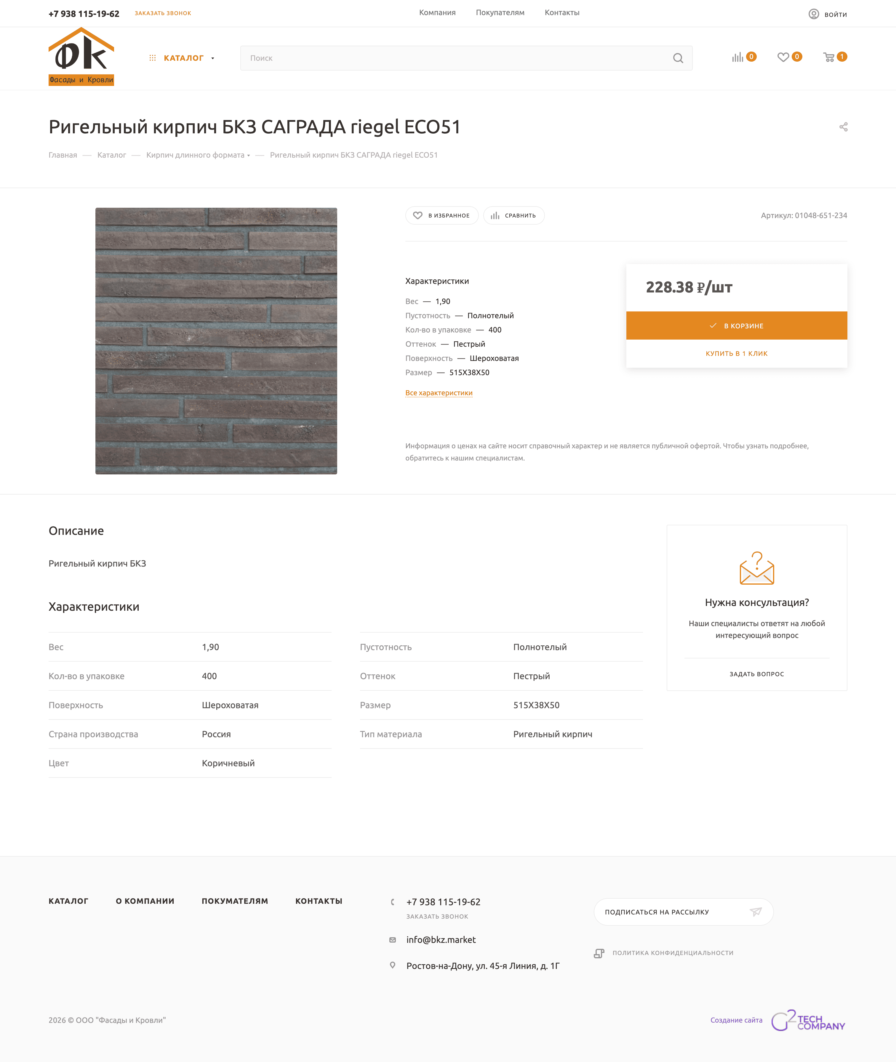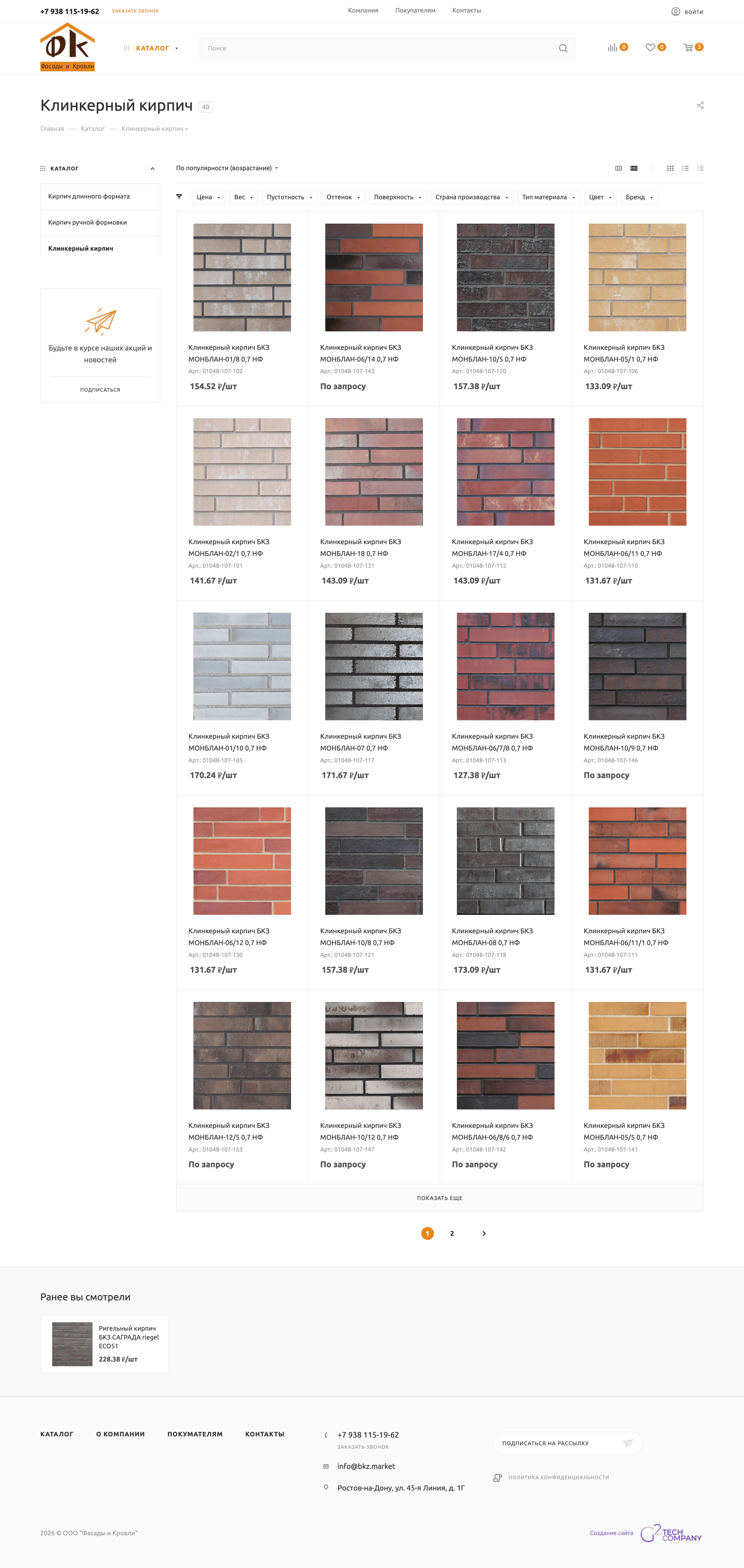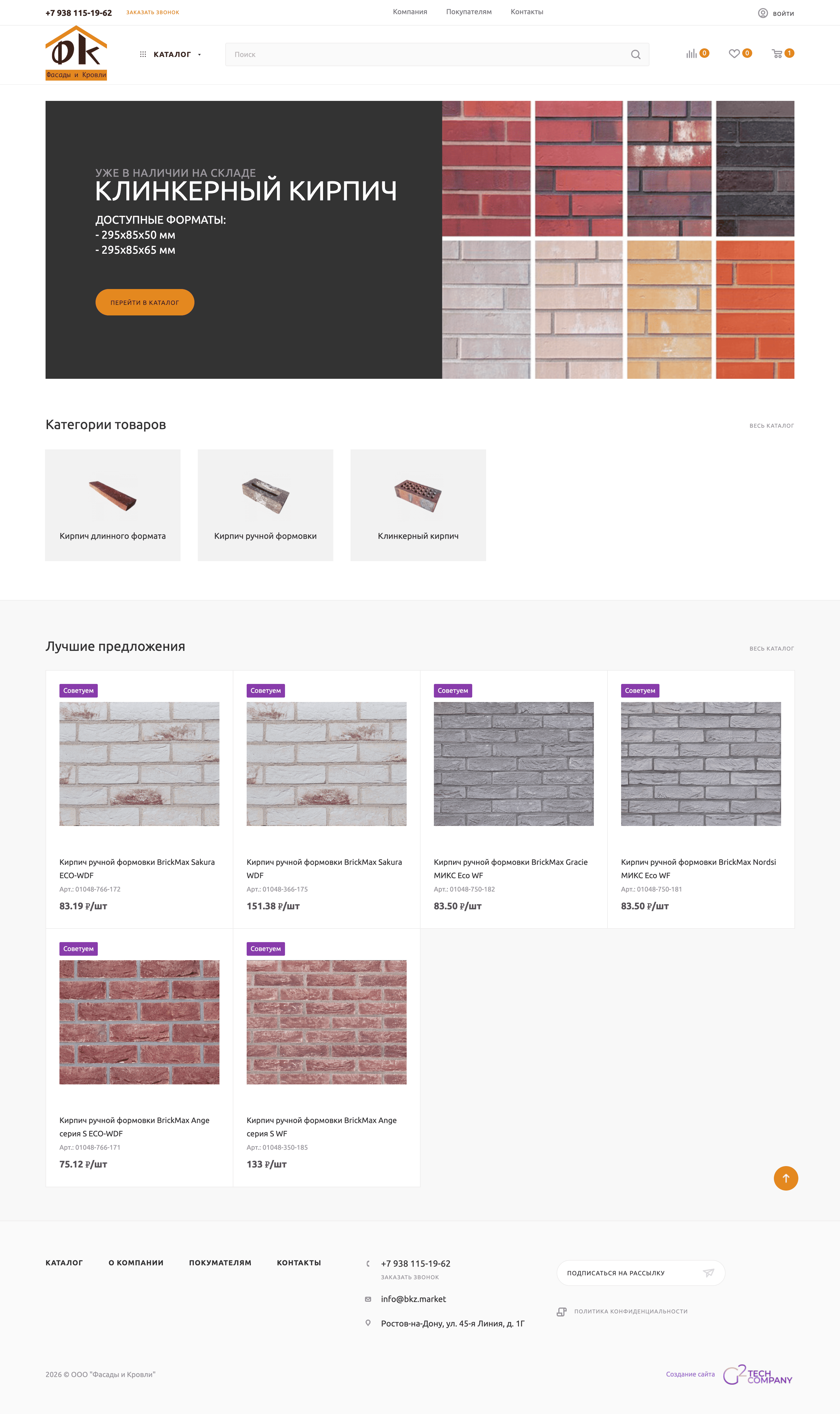 «Фасады и кровли» — современный интернет-магазин строительных материалов с фокусом на кирпич.