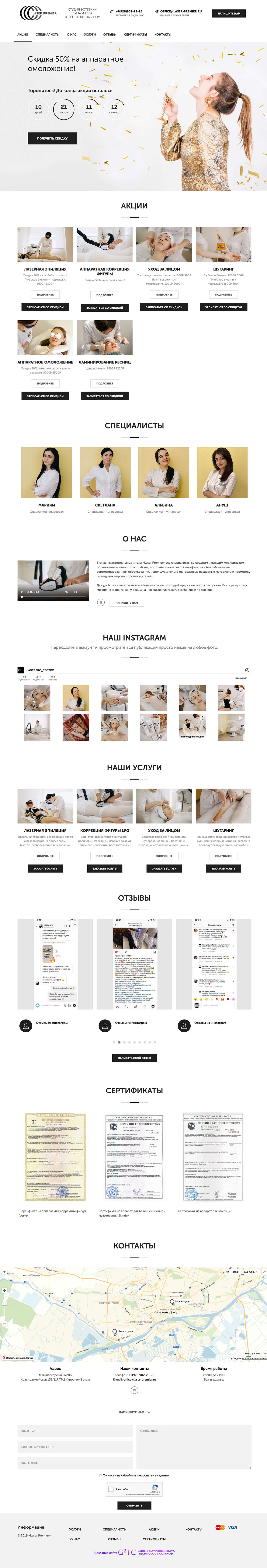 Создали современный корпоративный сайт для студии эстетики лица и тела Laser Premier. Наша задача — передать атмосферу уюта и профессионализма, показать услуги и сделать процесс записи максимально простым. Мы взяли готовое решение, адаптировали его под фирменный стиль, проработали структуру и контент, уделив внимание каждой детали — от цветовых акцентов до логики навигации. В итоге сайт стал лёгким, гармоничным и полностью отражает философию бренда — премиум-качество в доступной форме.