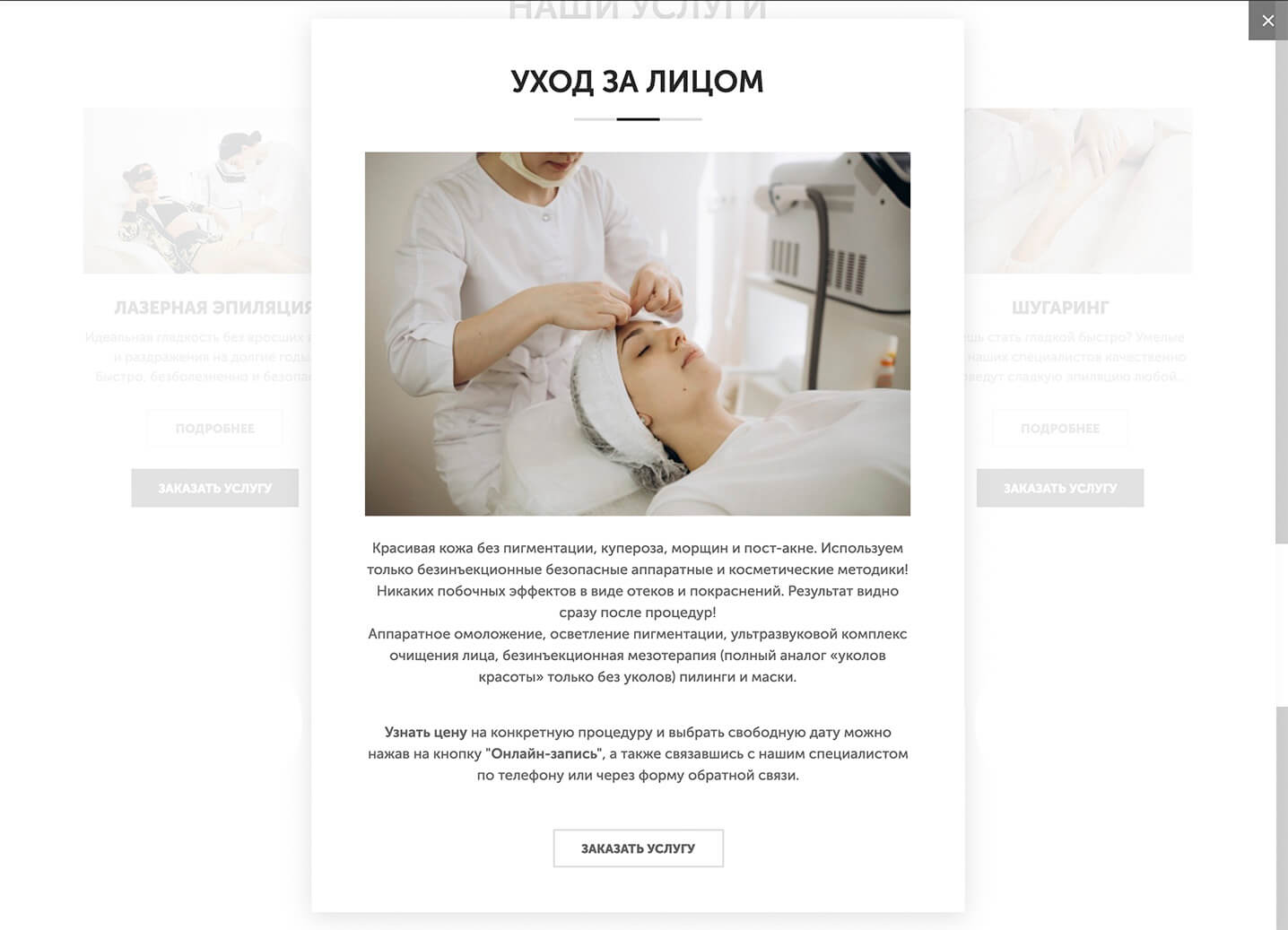 - Структура, понятная аудитории: услуги → преимущества → отзывы → запись.
