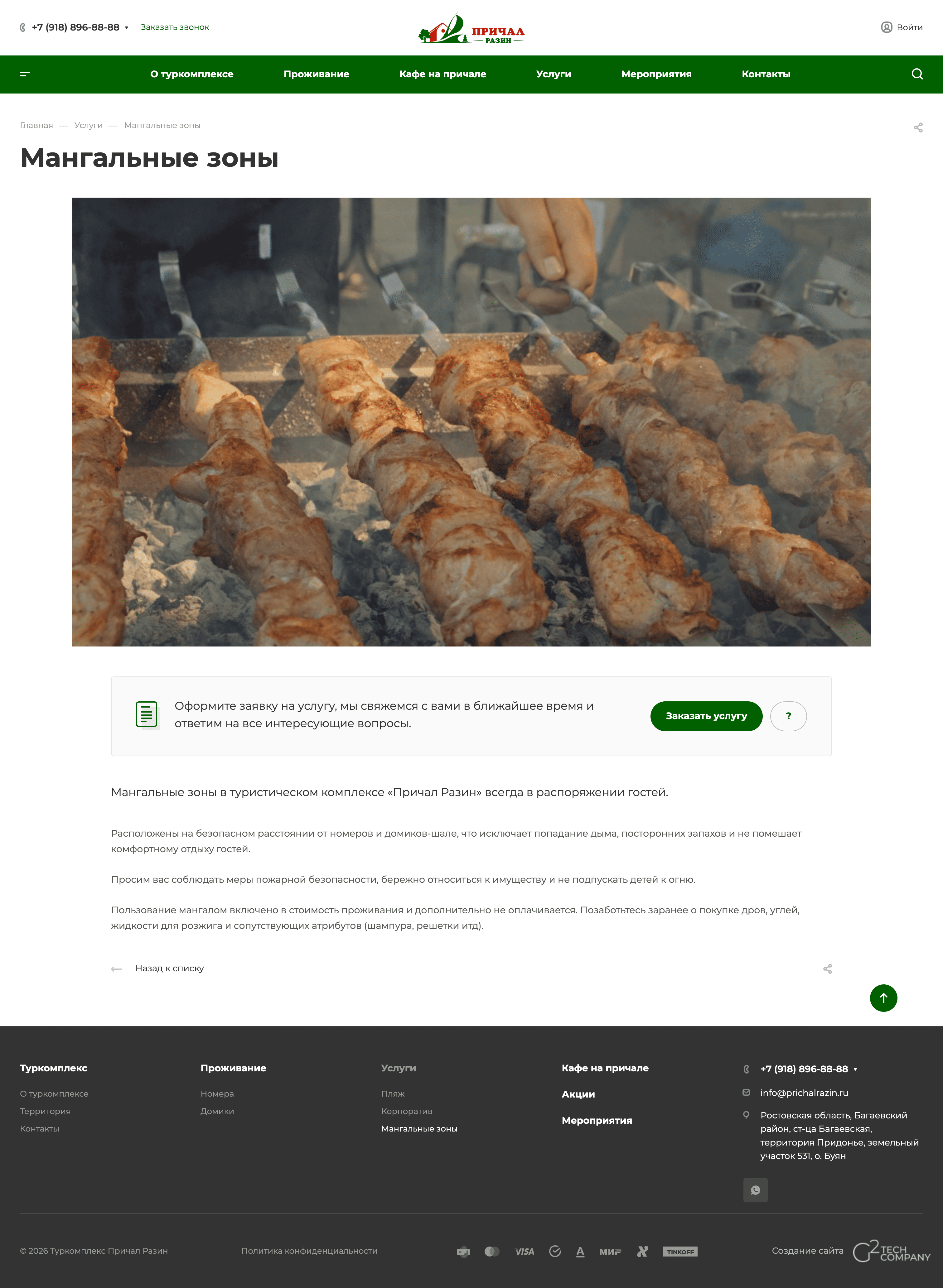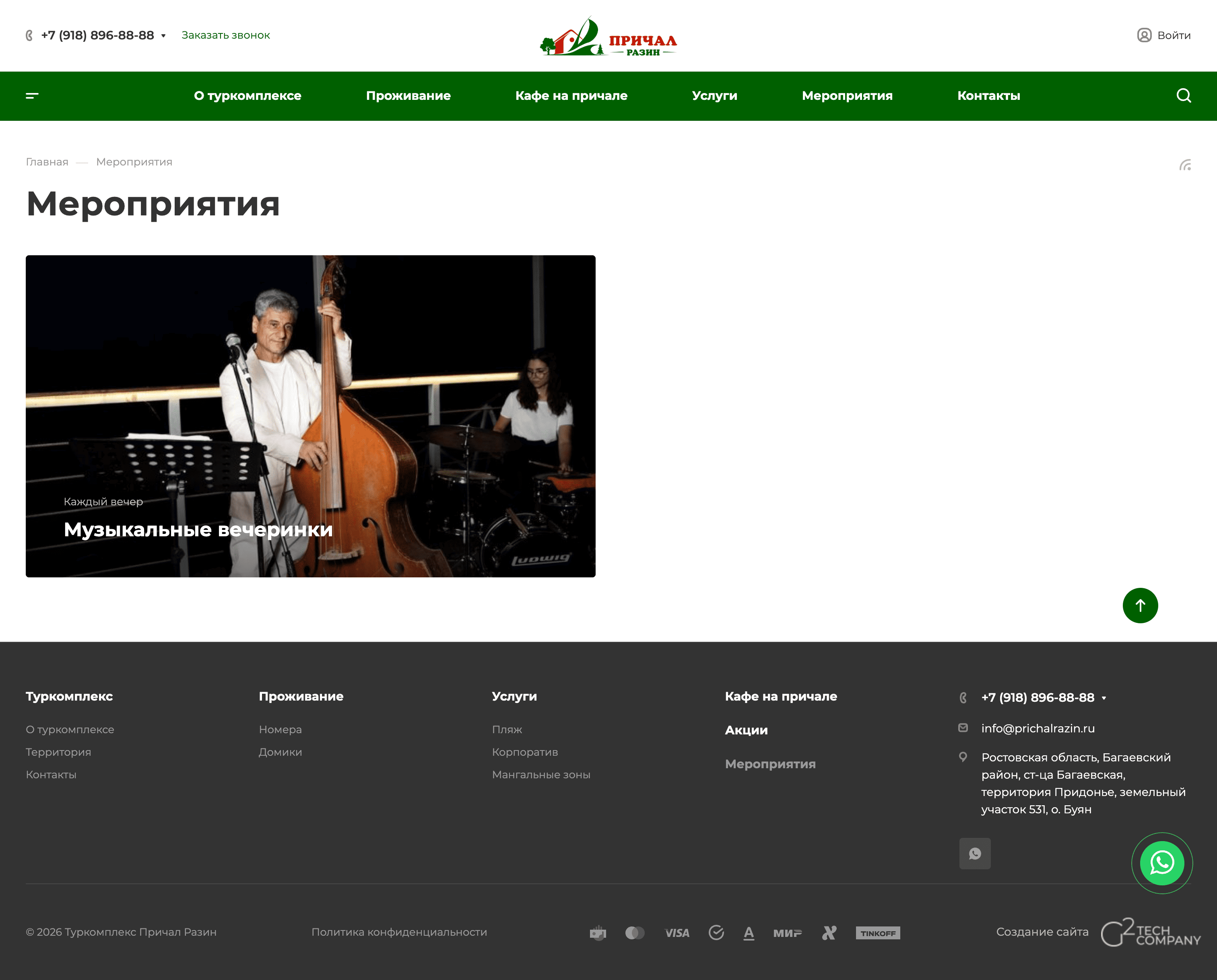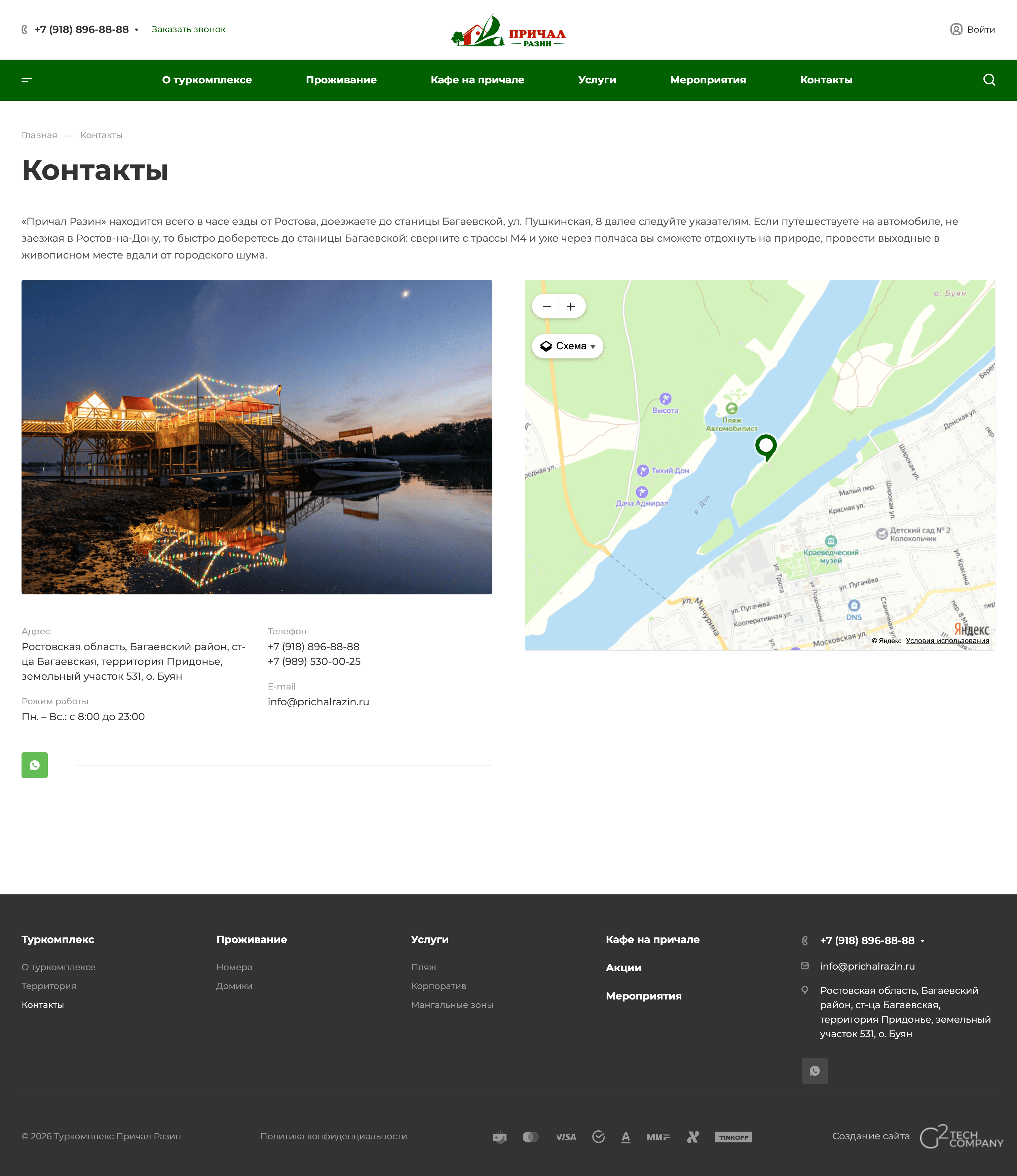 Сайт туристического комплекса «Причал Разин» с онлайн-бронированием